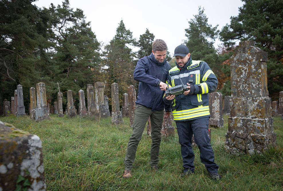 Die Luftaufnahmen per Drohne vom großen jüdischen Friedhof in Laudenbach werden demnächst unter anderem in der neuen Kultur-App zu sehen sein.
