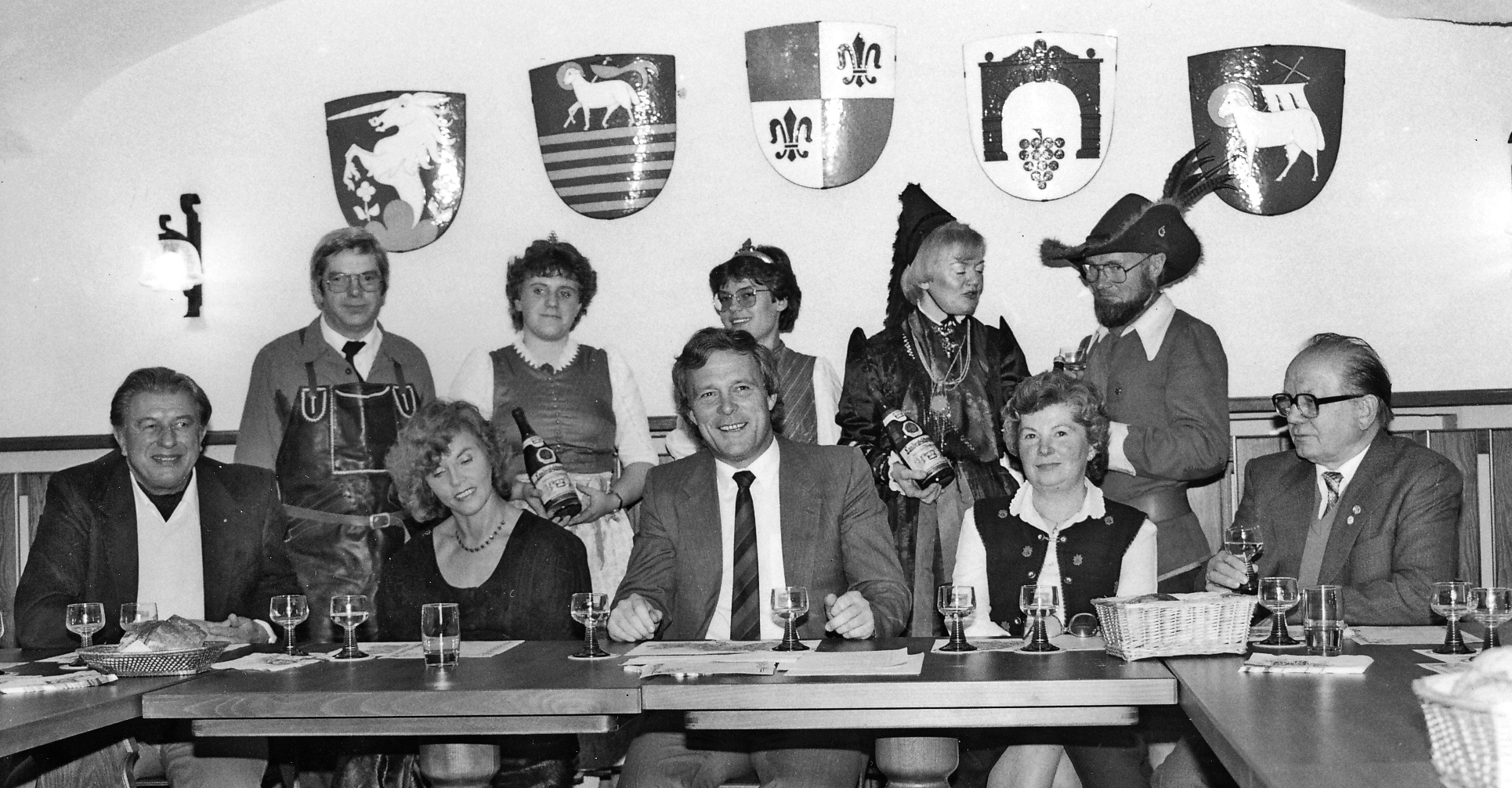 Vorstellung des Landratschoppens im Jahre 1984 (auf dem Bild links zu sehen Landrat a. D. Erwin Ammann, in der Mitte der damalige Landrat Armin Grein).