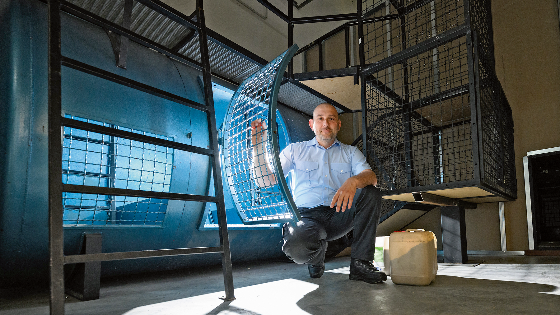 Außerdem wurde hier auch eine technisch-taktische Betriebsstelle eingerichtet, um für die ab 2023 geltende digitale Alarmierung gut gerüstet zu sein. Durch diese können die nötigen Einsatzkräfte gezielter alarmiert werden – zum Beispiel Atemschutzgeräteträger. Gerade für diese ist die Übungsstrecke ein wichtiger Bestandteil, um ihre Ausbildung und ihre Übungen zu absolvieren, um für den Ernstfall gerüstet zu sein. „Es wird die Belastung im Einsatz simuliert“, erklärt Florian List. Zunächst muss eine Endlosleiter bestiegen werden, auch mit Gewichten wird die Kondition überprüft. Anschließend geht es in einen Tank der so genannten „Industriestrecke“, der vorne mit Gittern präpariert ist. „Wir sehen alles, können stets eingreifen, wenn es in der Strecke zur Panik oder zu einem Unfall kommt. Die Gitter sind überall abnehmbar“, so Florian List. Die vergitterte Strecke ist mit Hindernissen ausgelegt, es geht auf Leitern nach oben oder auf Schrägen nach unten. Immer zu zweit, wie im Einsatz. Die Abstimmung ist dabei wichtig, allein ist die Strecke nicht zu schaffen.