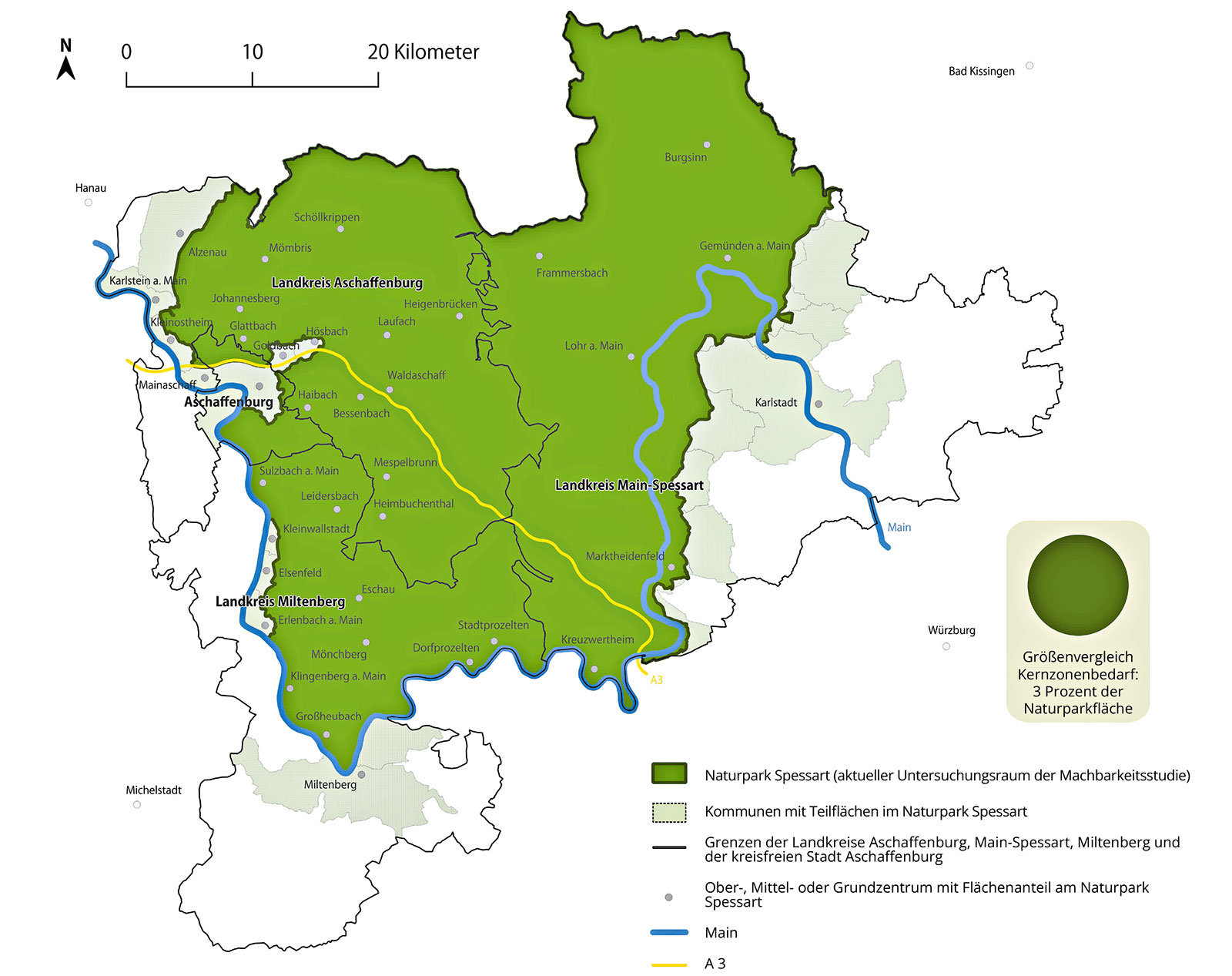 Der Untersuchungsraum der Machbarkeitsstudie entsprach dem Gebiet des bereits bestehenden Naturparks Spessart mit einer Fläche von etwa 171.000 Hektar.