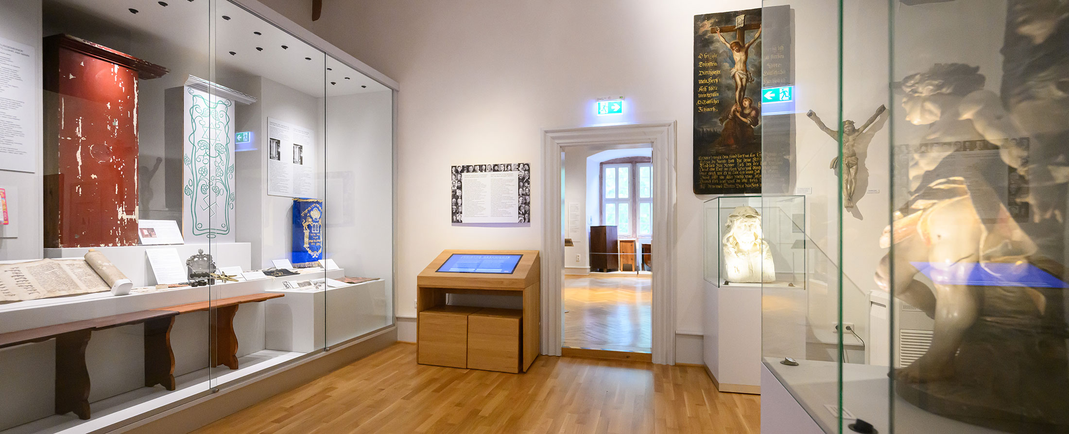 Im November 2024 öffnete der neue Ausstellungsbereich zur jüdischen Geschichte im Spessart und im Landkreis Main-Spessart seine Türen. Neben dem Toraschrein sind religiöse Schriften, Alltagsgegenstände und persönliche Dokumente zu sehen – etwa Postkarten, die den Kontakt zwischen jüdischen und christlichen Bürgern dokumentieren. Eine Medienstation führt interaktiv durch die israelitischen Kultusgemeinden des heutigen Landkreises und erzählt Familiengeschichten jüdischer Einwohner Lohrs vom 19. bis ins 20. Jahrhundert. Sämtliche Ausstellungstexte sind auch auf Englisch verfügbar, um möglichst vielen Menschen den Zugang zu ermöglichen. „In der Ausstellung weisen wir auch darauf hin, dass es in ganz vielen anderen Gemeinden in Main-Spessart noch Spuren jüdischen Lebens gibt“, so Schleicher. Diese Spuren finden sich etwa in Form von Gedenktafeln, restaurierten Synagogen oder jüdischen Friedhöfen, etwa in Laudenbach und Karbach. Ein fester Platz im kulturellen Gedächtnis